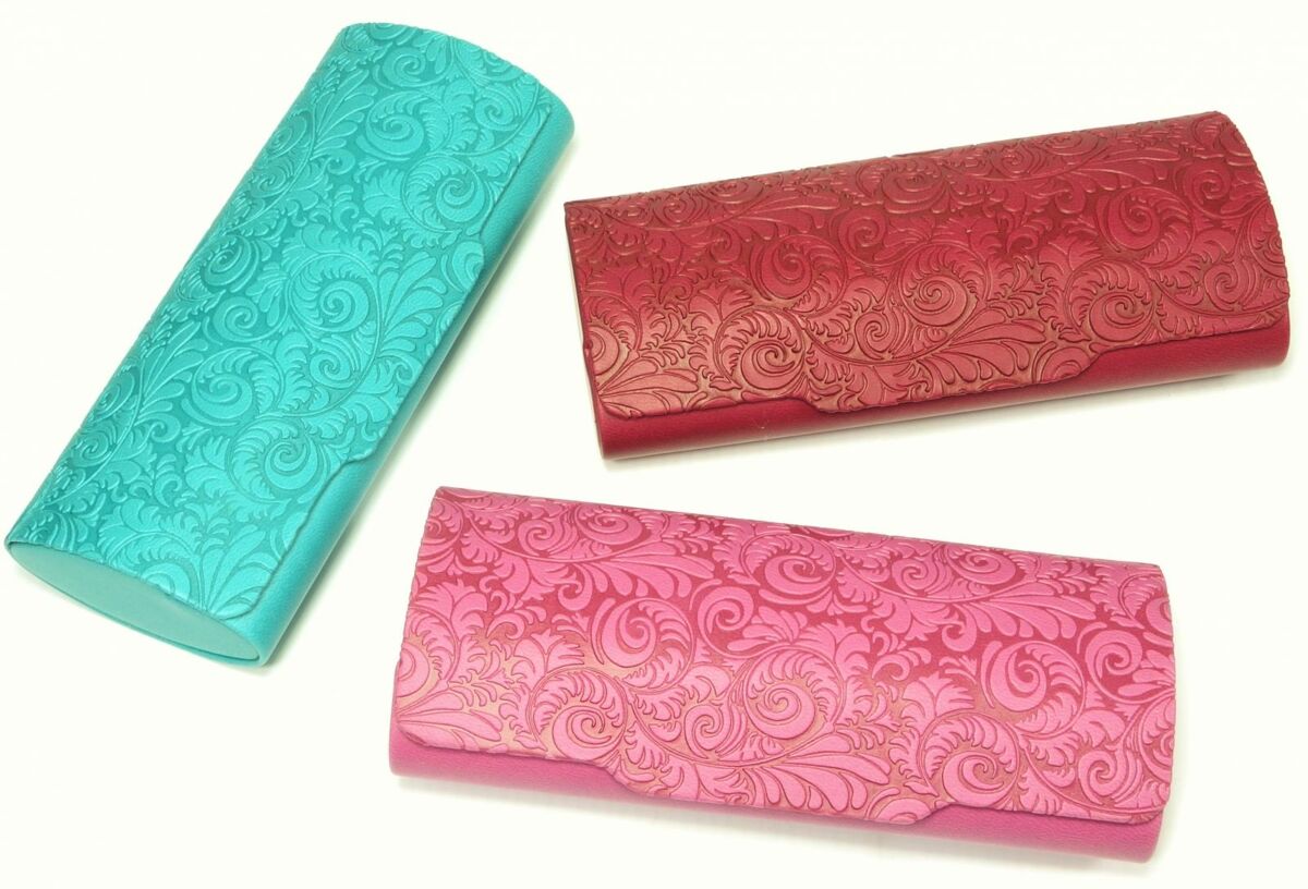Exklusivníprostorné brýlové pouzdro potažené luxusní imitací vzorované kůže s praktickým zavíráním na magnet a černým vnitřkem.
